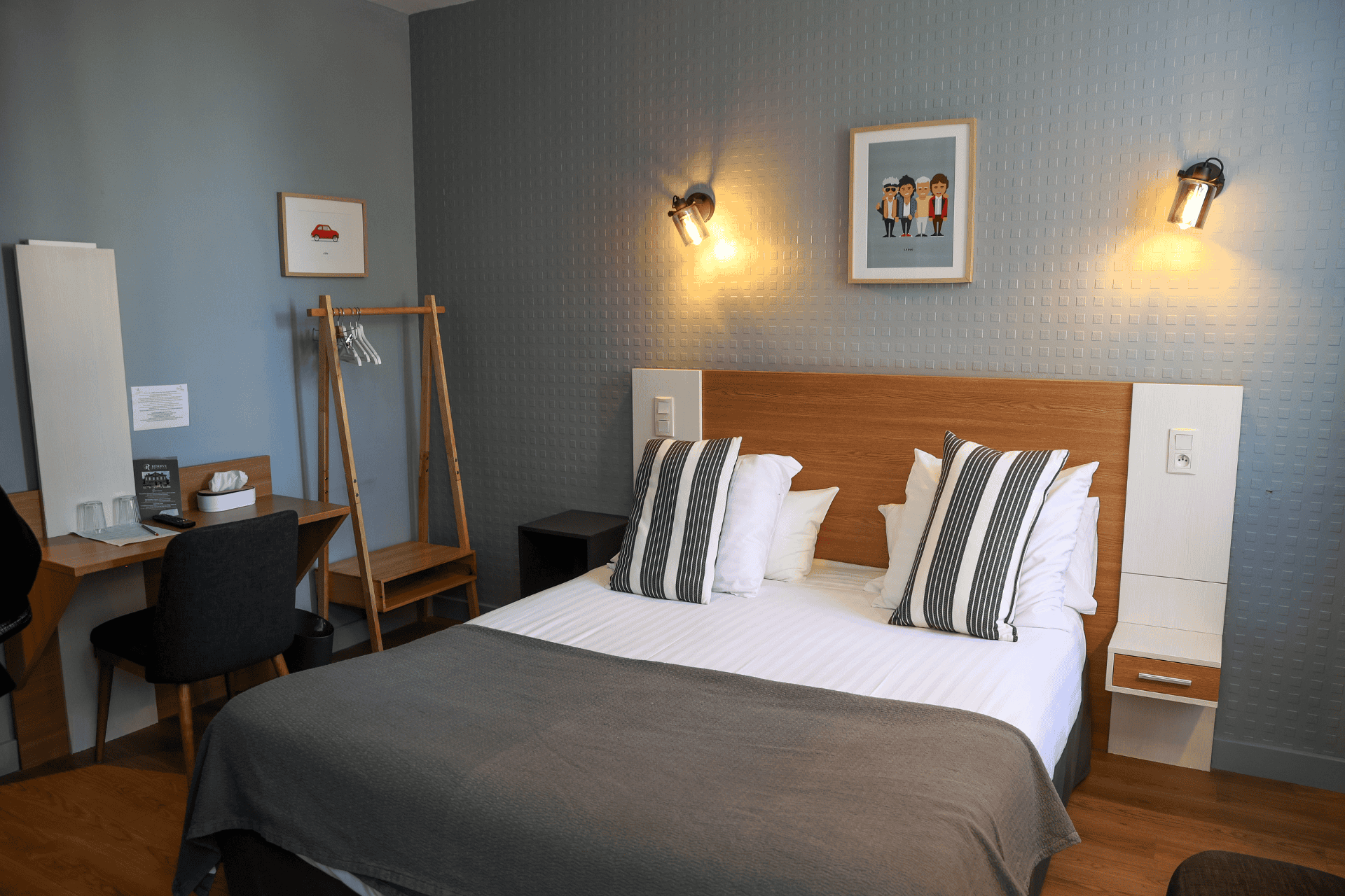 Au 2ème étage cette chambre est au calme avec une vue sur le parc public et la Halle Gaillarde.